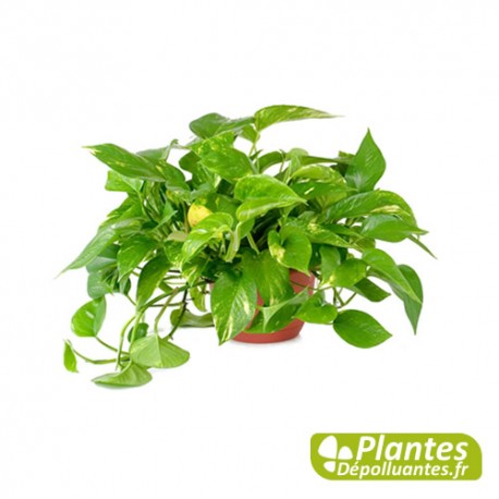 L’incontournable dévoreur de benzène , monoxyde de carbone , s’adapte facilement. Idéal pour créer des cloisons végétales, avec l’un des meilleurs. Son feuillage panaché aime la lumière et le rend bien. Il s’agit d’une plante grimpante aux feuilles vertes maculées de jaune.